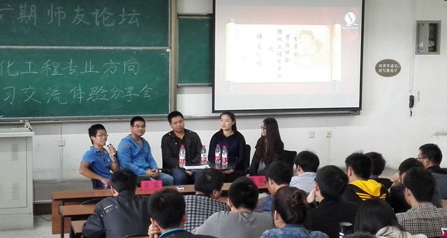 2015年4月10日,一竞技官网一竞技官网师友论坛之轻化工程分专业方向分享交流会于一竞技官网江安校区第一教学楼B503教室圆满结束。本次交流会由2013级轻化工程第四团支部主办。本次活动的嘉宾有2012级皮革化学与工程专业硕士研究生张金伟学长,2013级革制品设计硕士研究生冉美玲学姐,2011级皮革工程方向本科生杨兴宇学长,2012级革制品方向本科生李若依学姐。学院团委书记苏德强老师以及全体2013级轻化工程本科生参加了本次交流会。
