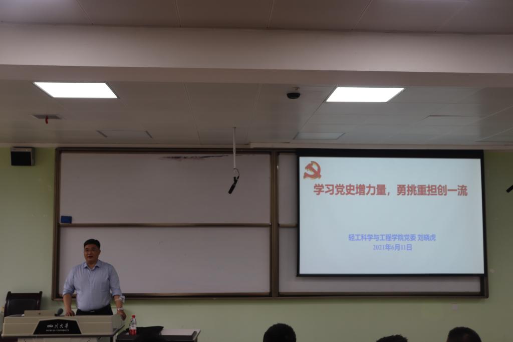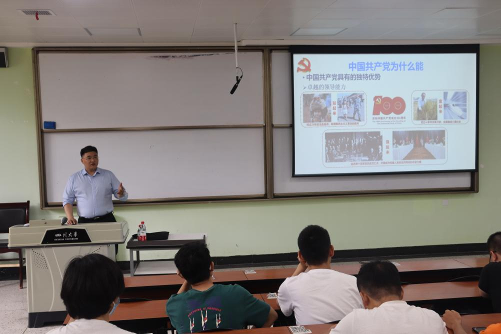 为深入推进党史学习教育走深走实,以更加高昂的状态迎接中国共产党建党100周年,2021年6月11日下午,公司党委刘晓虎书记在一竞技官网江安校区第一教学楼B103教室为2020级本科生作党史学习教育专题辅导报告。本次辅导报告由2020级辅导员余昕玲老师主持。刘晓虎书记以“学习党史增力量,勇挑重担创一流”为主题,从“中国共产党为什么能”、“马克思主义为什么行”、“中国特色社会主义为什么好”、“学习党史应该获得的力量”四个部分进行重点讲授。