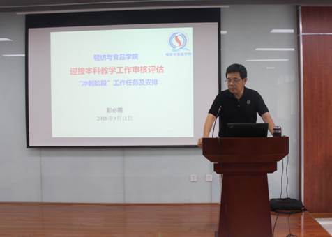 在会上,彭必雨经理首先介绍了此次评估的考察日程安排、评估专家清单、审核评估考察的“五个度”、审核评估考察内容(6+1项目)、专家进校考察工作方式和专家走访学院的形式。然后,彭经理重点介绍了学院迎接专家进院的工作安排事项及时间节点,包括学院自评报告、汇报PPT及支撑材料和试卷、毕业论文材料等案头材料的整理及摆放;专家调阅材料和专家访谈的责任人及协调人安排;本科实验室和平台实验室安排;评估期间上课教师所需注意事项等等。最后,刘晓虎书记在开学形势报告中针对本科审核评估工作,为学院老师加油打气。