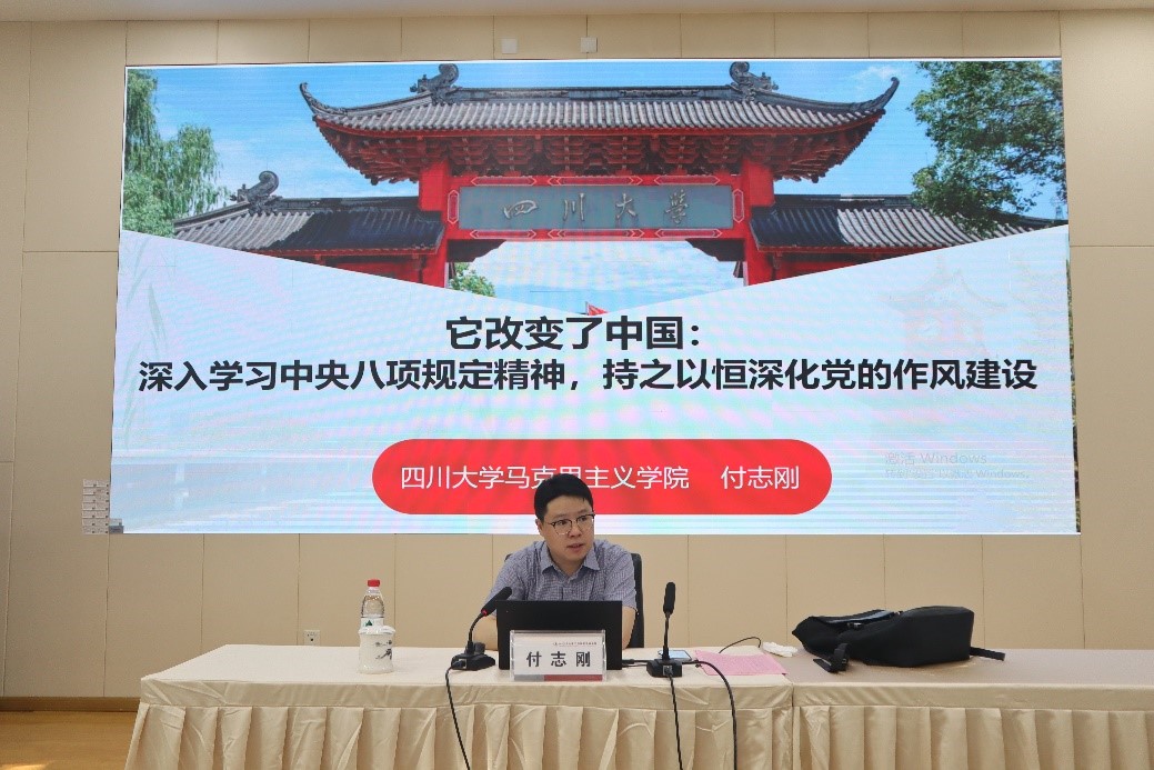 一竞技官网马克思主义学院付志刚教授围绕“中央八项规定精神与党的作风建设”进行专题授课,深入浅出地讲解了作风建设的重要意义和实践要求,强调要以典型案例开展学习教育,推进作风建设常态化长效化。