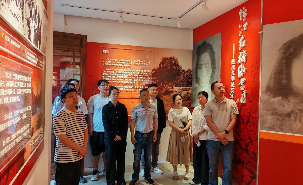 随后,支部党员步入江姐宿舍复原展厅。简朴的木桌、泛黄的书籍将大家带回当年江姐在川大求学时的生活点滴,提醒着党员同志们要厉行勤俭节约,严守廉洁纪律。在川大英烈事迹展厅,党员们学习了包括江姐在内的川大革命英烈的感人事迹。他们前赴后继、为国奉献的精神,深刻诠释了共产党员的忠诚与责任。