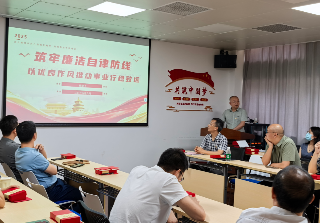 研讨伊始,支部书记结合集中大课学习内容,分享了学习体会,重申了深入贯彻中央八项规定精神学习教育的重大意义。八项规定不仅是加强作风建设的制度遵循,更是新时代党员干部必须始终坚守的政治纪律与行动准则。随后,周建飞副经理以“筑牢廉洁自律防线,以优良作风推动事业行稳致远”为题讲授专题党课,阐释了作风建设与高校发展之间的内在联系,强调广大党员教师要在师德师风建设、科研诚信、人才培养等方面走在前列、作出表率。