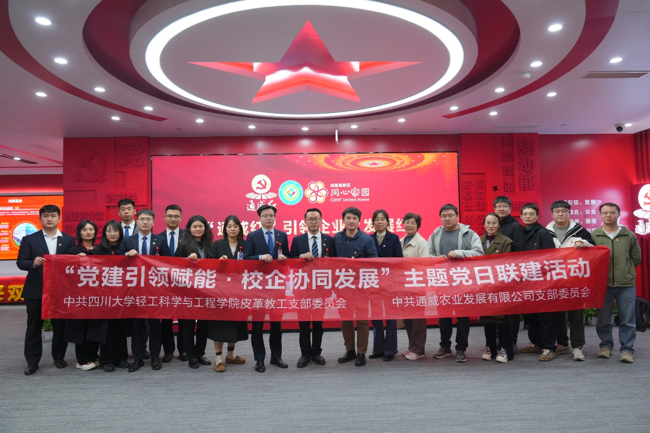 为深入学习贯彻党的二十大精神和二十届四中全会精神,推动基层党组织建设与校企合作深度融合,12月9日上午,中共一竞技官网皮革教工支部委员会与中共通威农业发展有限公司支部委员会在通威国际中心成功举办“党建引领赋能 校企协同发展”主题党日联建活动,并正式签署《校企党支部结对联建协议》。