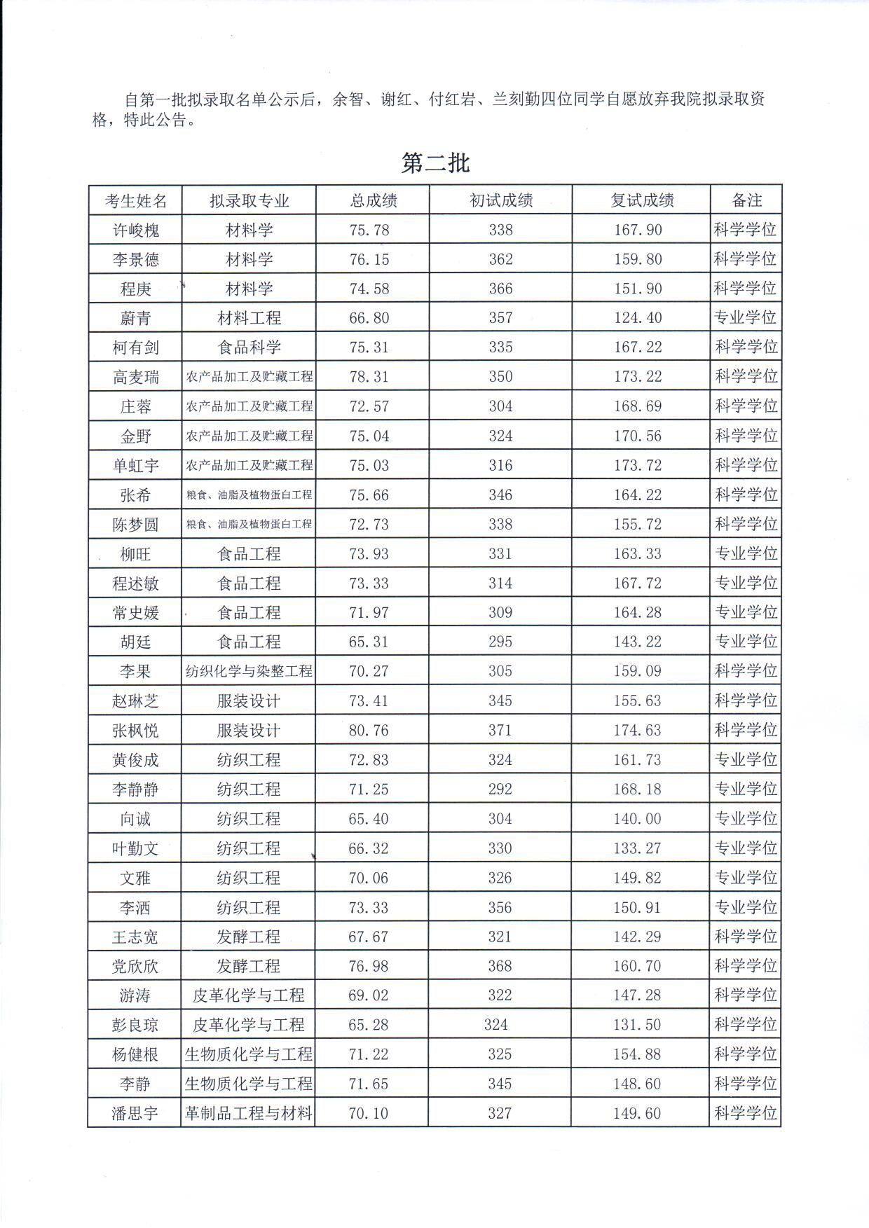 轻纺与学院2016年硕士研究生招生拟录取名单公示