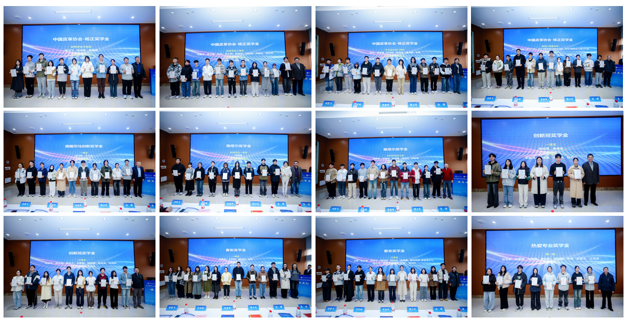 11月28日下午,2025年专业奖学金颁奖典礼在皮革楼互联网中心举行。中国皮革协会副理事长陈占光、德国司马化学有限公司皮革部中国区总经理张建华、斯塔尔精细涂料有限公司皮革事业部中国区区域销售经理涂刚、天津春发生物科技集团有限公司项目经理董婷等企业嘉宾,公司党委书记李天富、经理彭必雨,副经理周建飞、迟原龙等院领导,生物质与皮革工程系系主任林炜、副系主任程海明,食品工程系系主任吕远平等,与全体获奖师生共同参加典礼。公司党委副书记姜新主持。